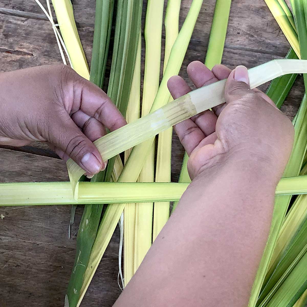 Inspired by the rainforest and by pre-Colombian body painting, each basket is a dialogue between tradition and the natural world. Weavers stitch with fine needles and the most supple fibers of the werregue and naguala palms—materials prepared, softened, and dyed with pigments drawn from seeds, roots, and leaves.